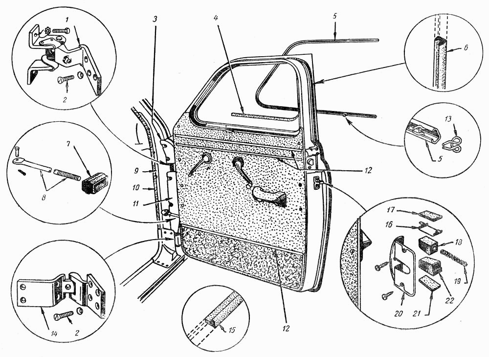 | 21 | показать на схеме | 30-6106148 | Буфер нижнего сухаря гнезда фиксатора двери |
