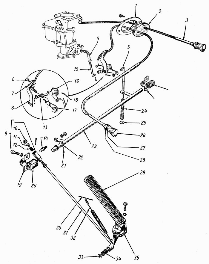 | 15 | показать на схеме | 20-1108051 | Тяга от привода управления дроссельной заслонкой к карбюратору |