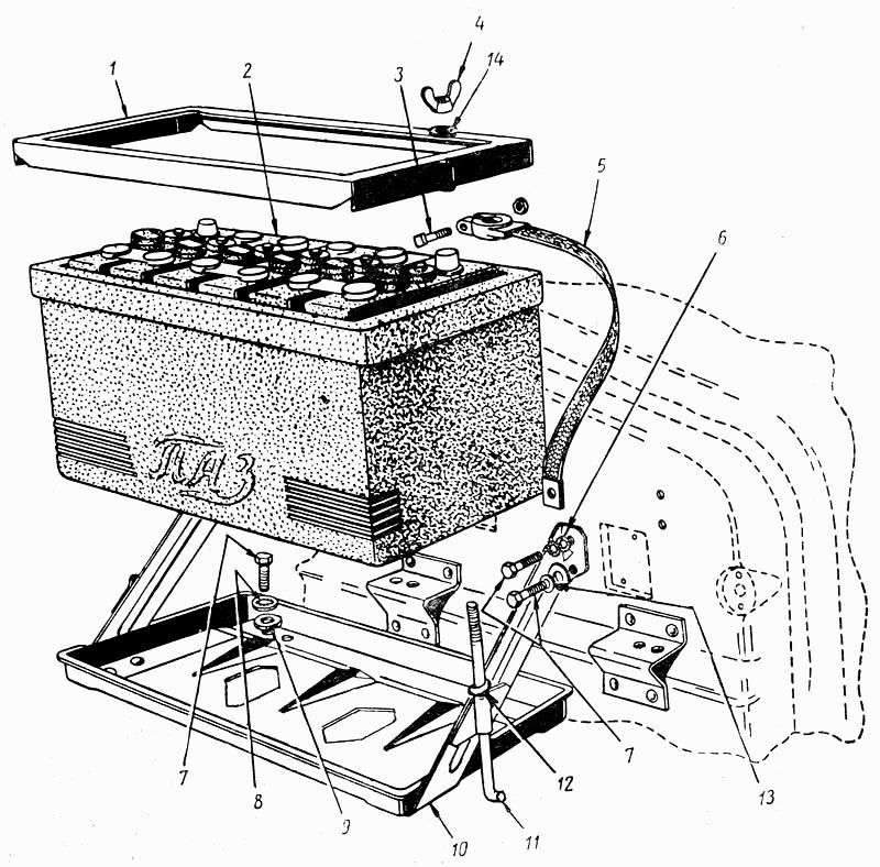 | 10 | показать на схеме | 20-3703020-Б | Основание крепления аккумуляторной батареи с кронштейном в сборе |