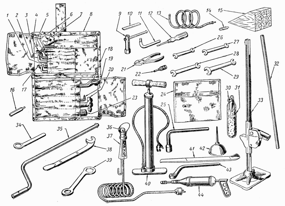 | 7 | показать на схеме | ИЗ-3901000 | Ключ гаечный разводной N 3 (51-3901165-Б) |