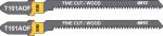 T101BRF. Шлифованные под свободным углом зубья, задний угол заточен. Прямой тонкий пропил. Реверсивный зуб. Для резки мягкой и твердой древесины, облицовочных панелей, плит с покрытием, полимерных материалов, ламината. Толщина реза: 3-30 мм. Материал: биметалл. Упаковка: блистер.